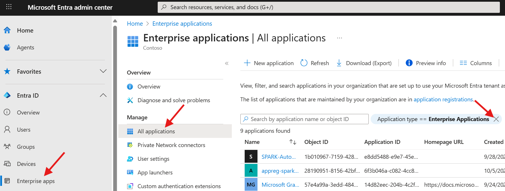 Enterprise appsfrom the left menu- Click on