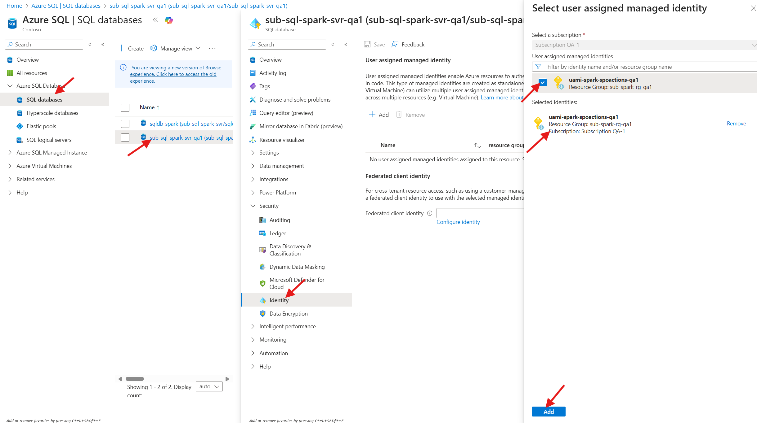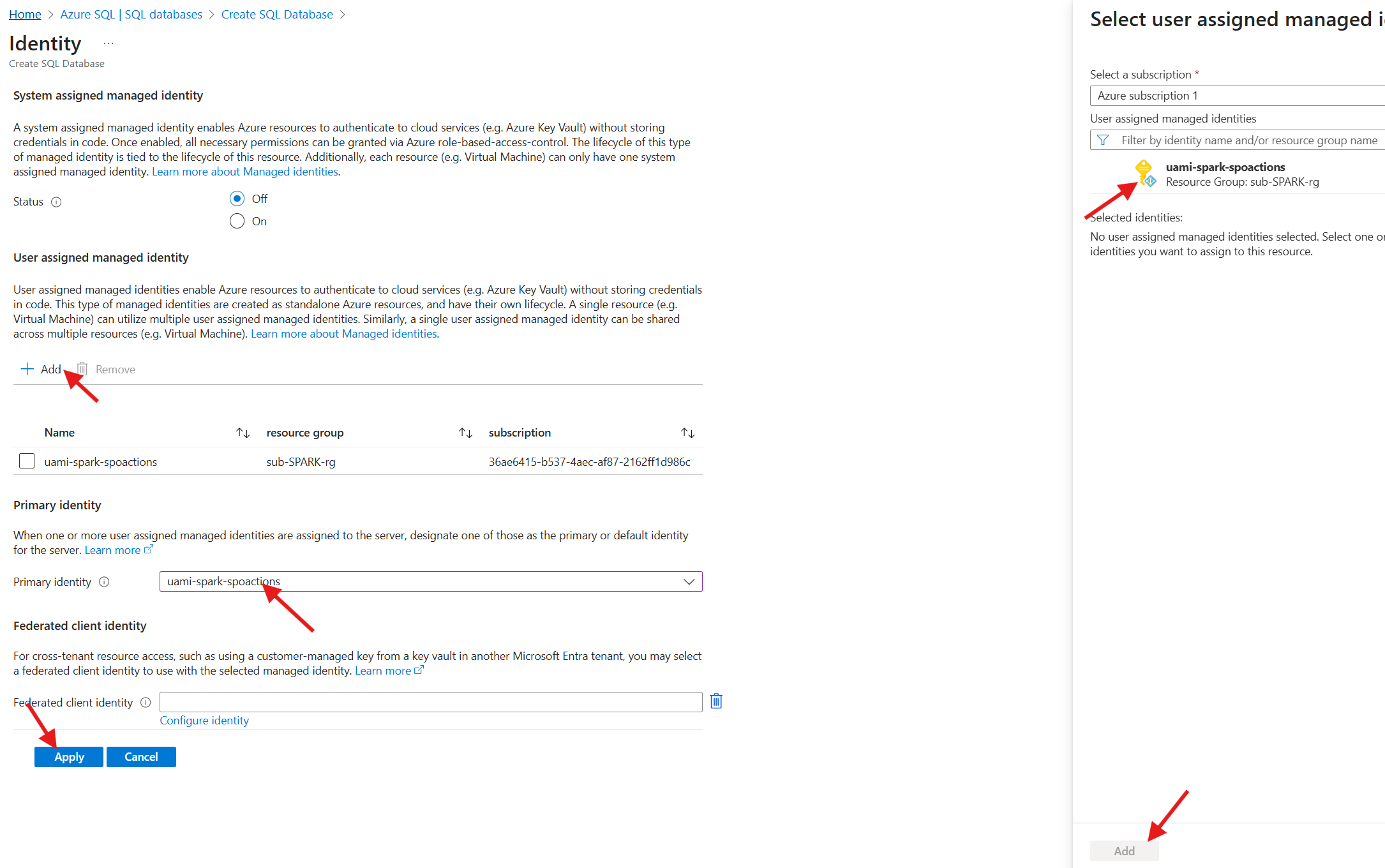 Add, select theuami-spark-spoactionsidentity and then click onAdd- Click