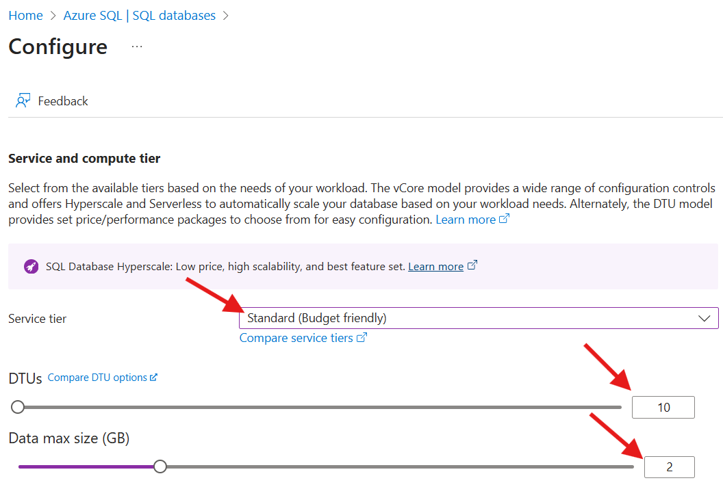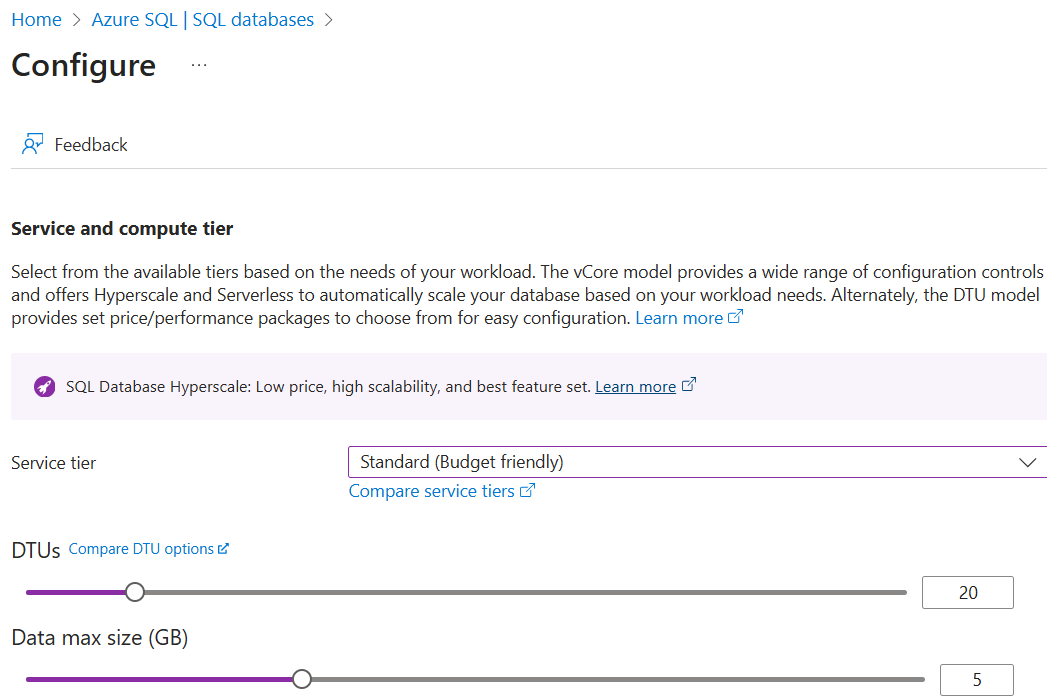 | Compute + storage | Standard S0 2GB |