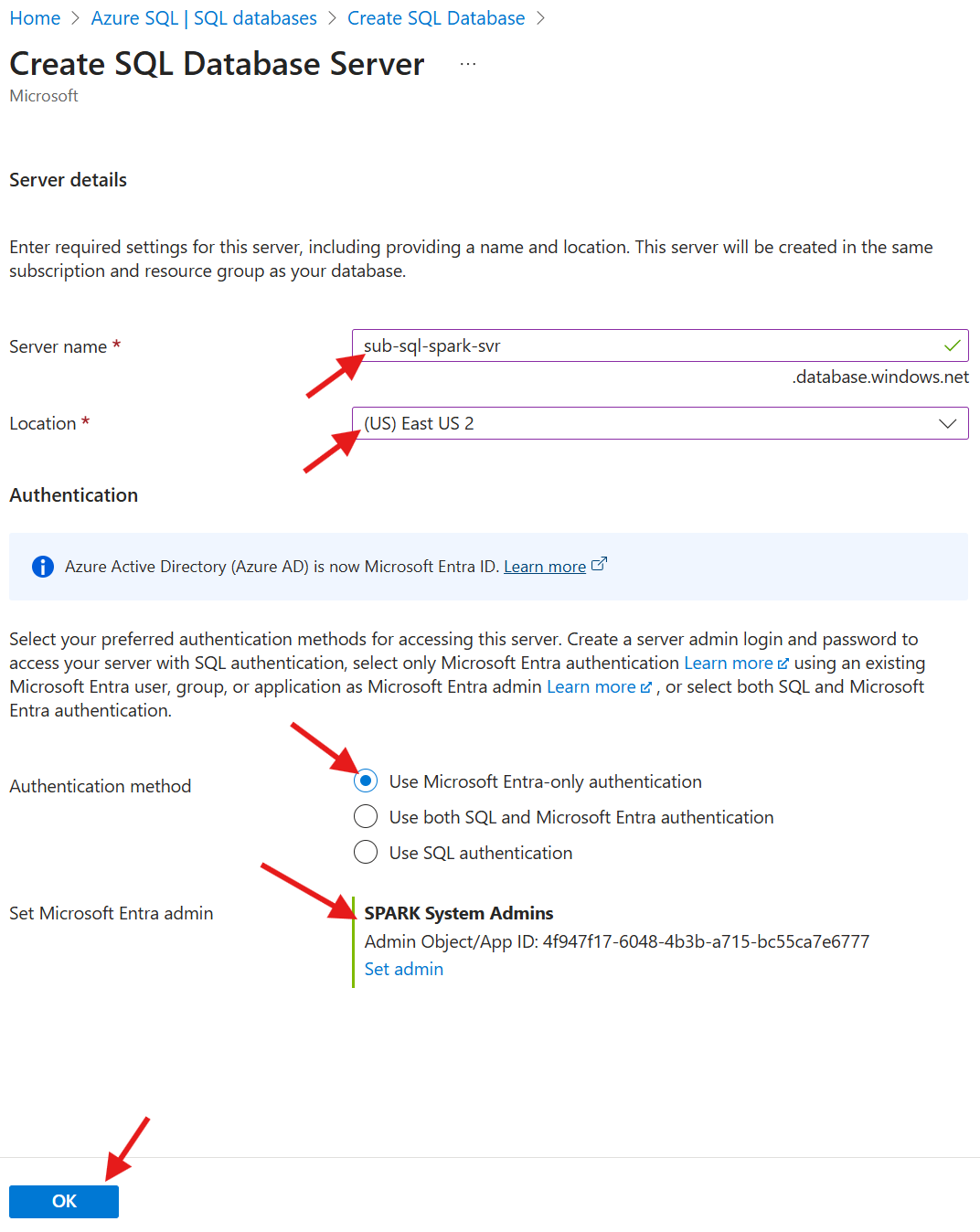 | Set Microsoft Entra admin | SPARK System Admins |