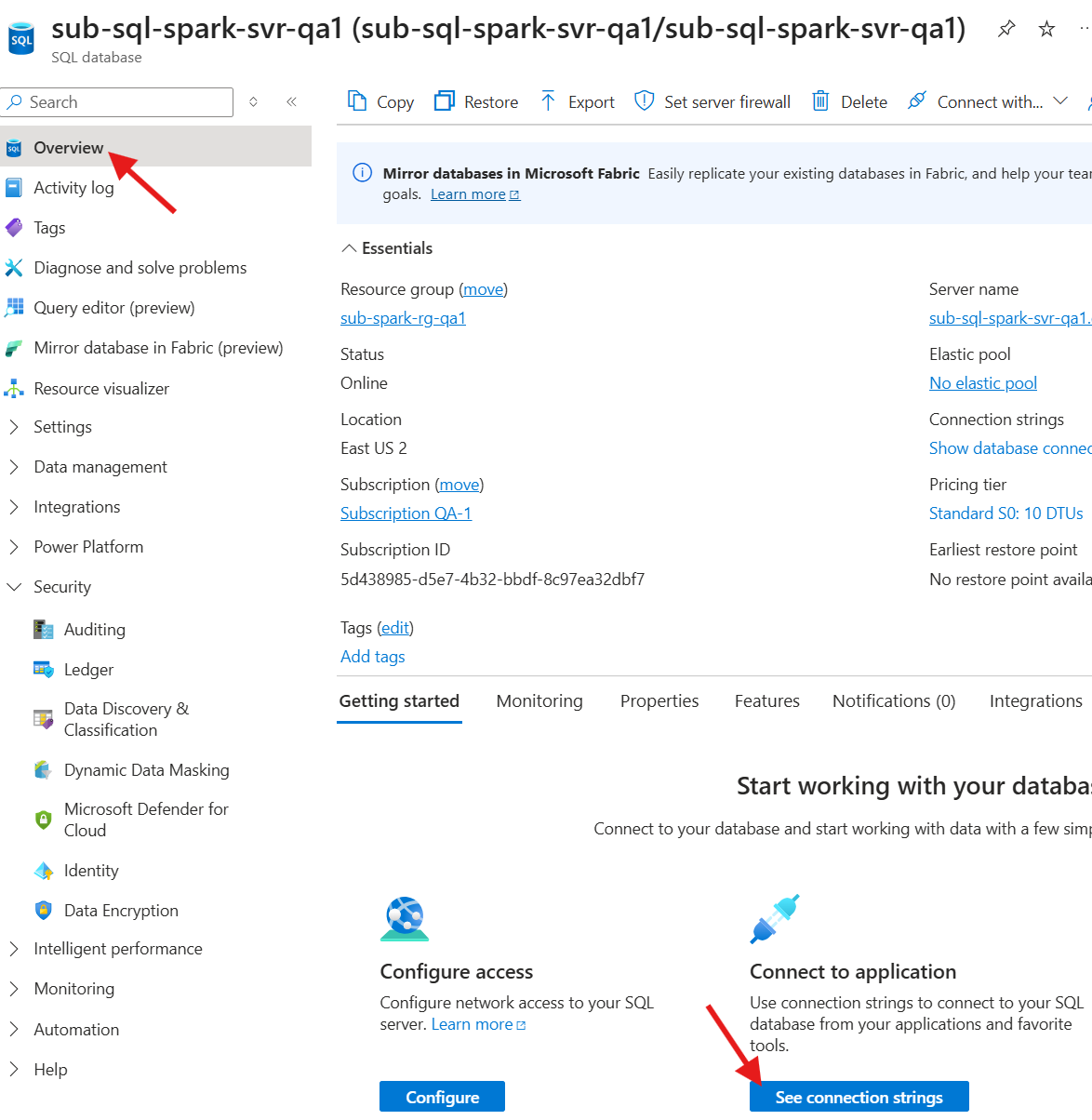 Step 5: Get SQL Connection String