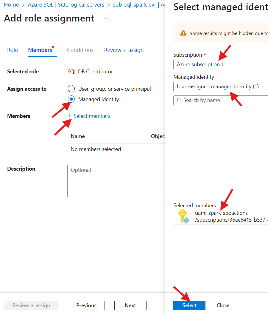 uami-spark-spoactionsidentity, and click onSelect9. Click on
