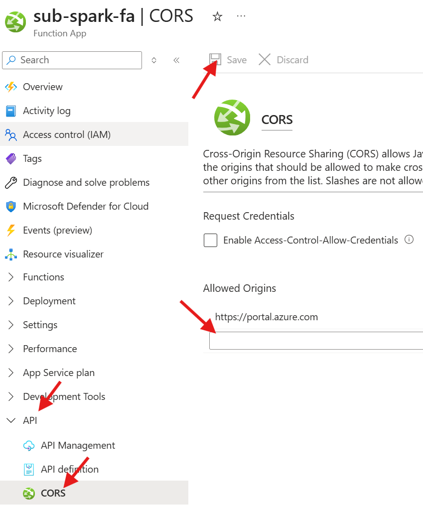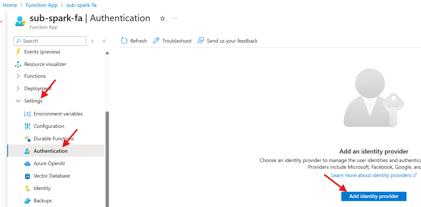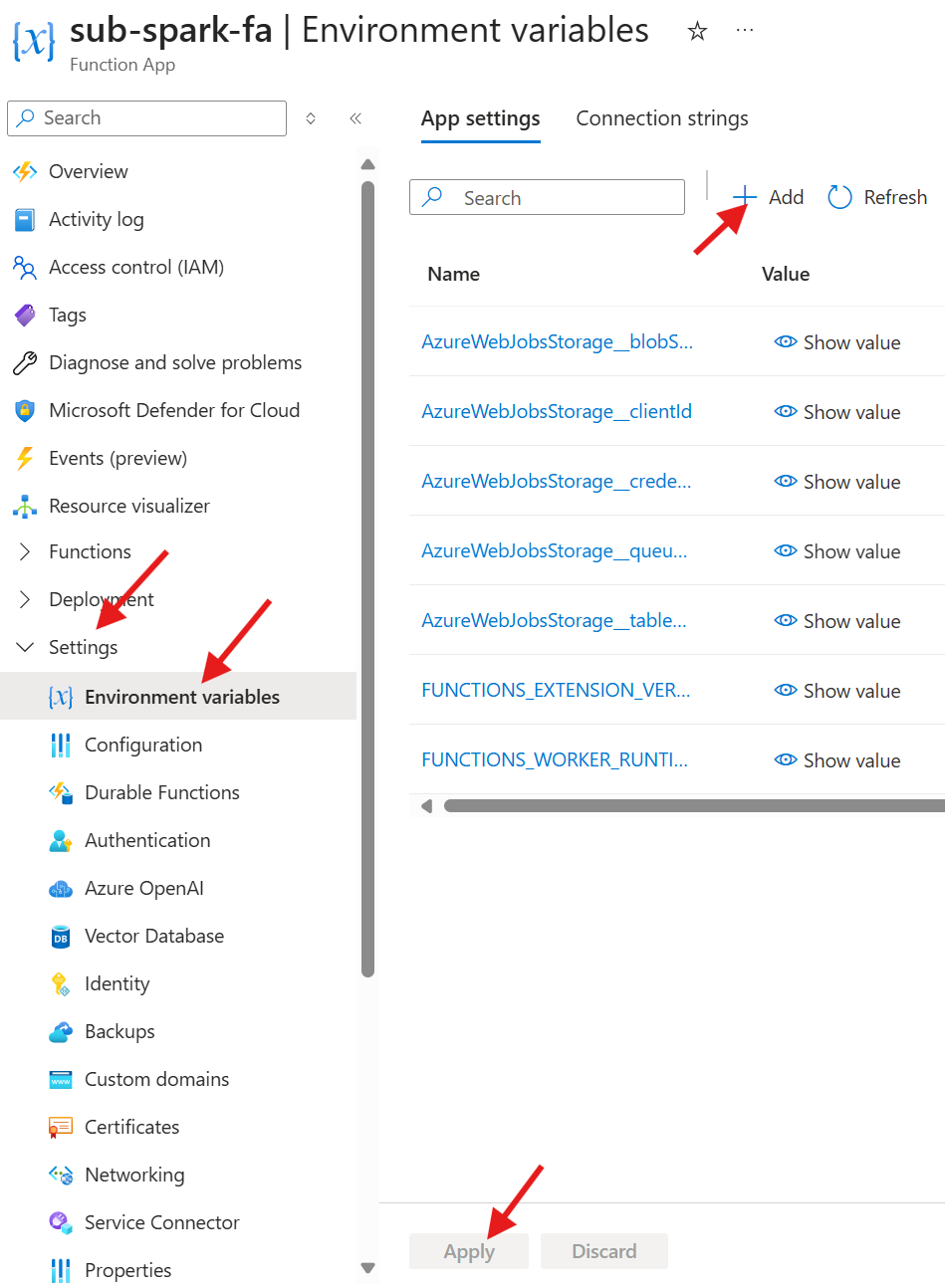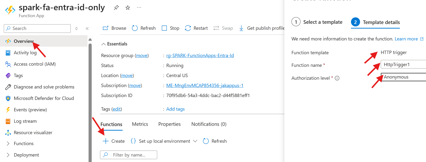 | Function App name | A unique name for the function app service (Example: sub-spark-fa) |