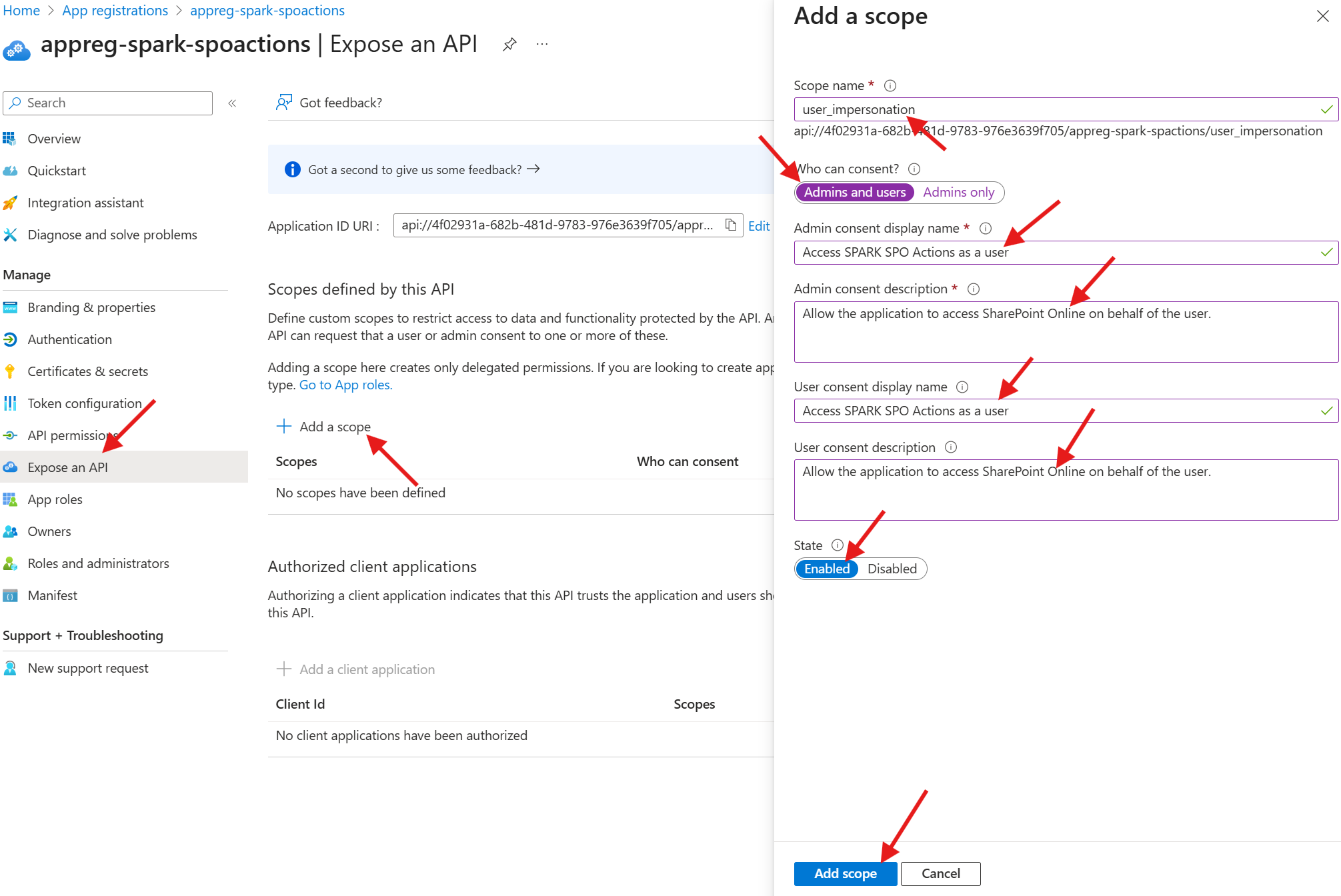 19. Set the following properties, and click on Add scope to add the scope