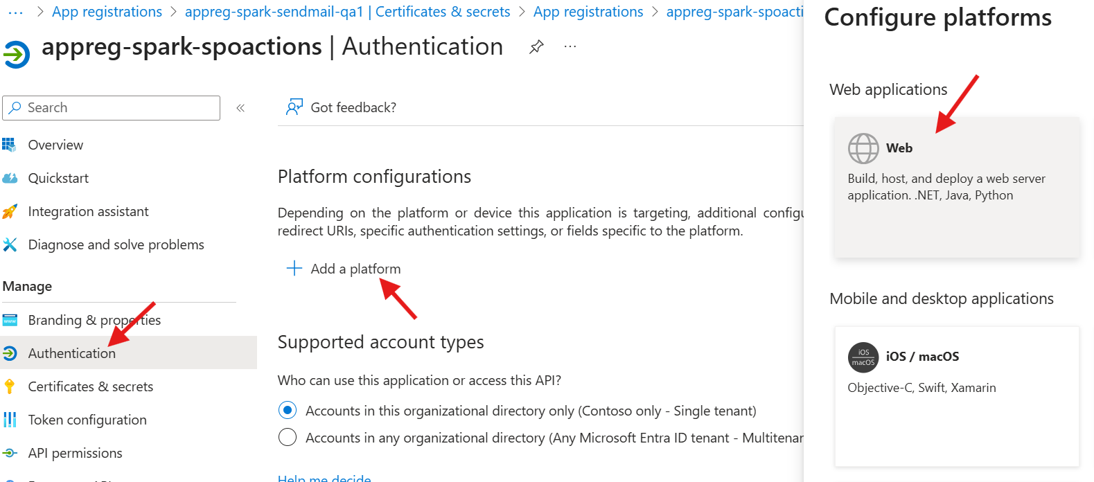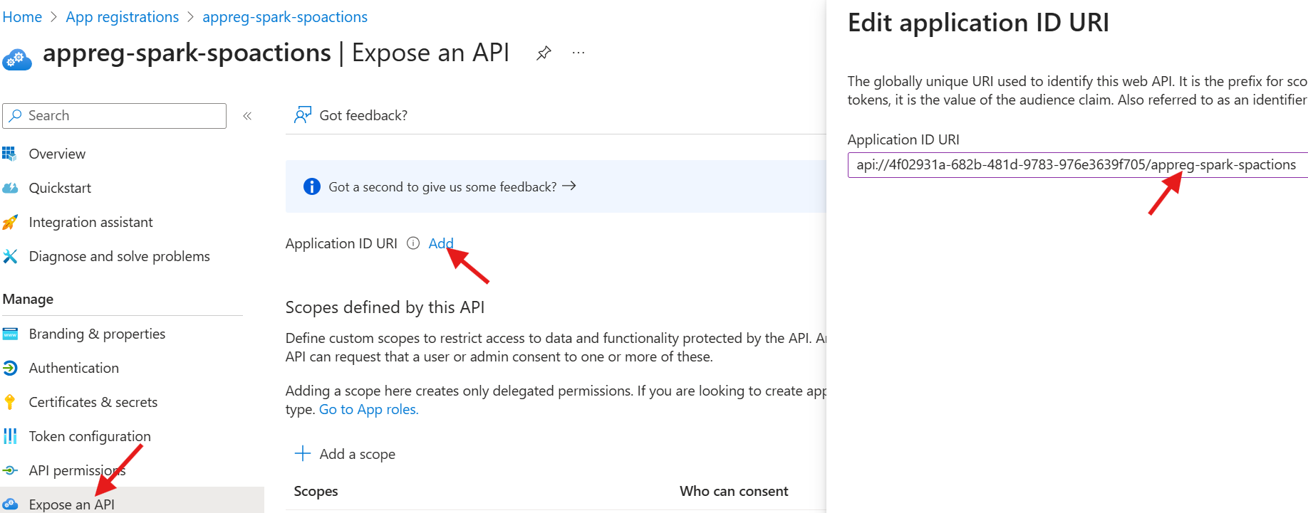 - View the appreg-spark-spoactions application registration