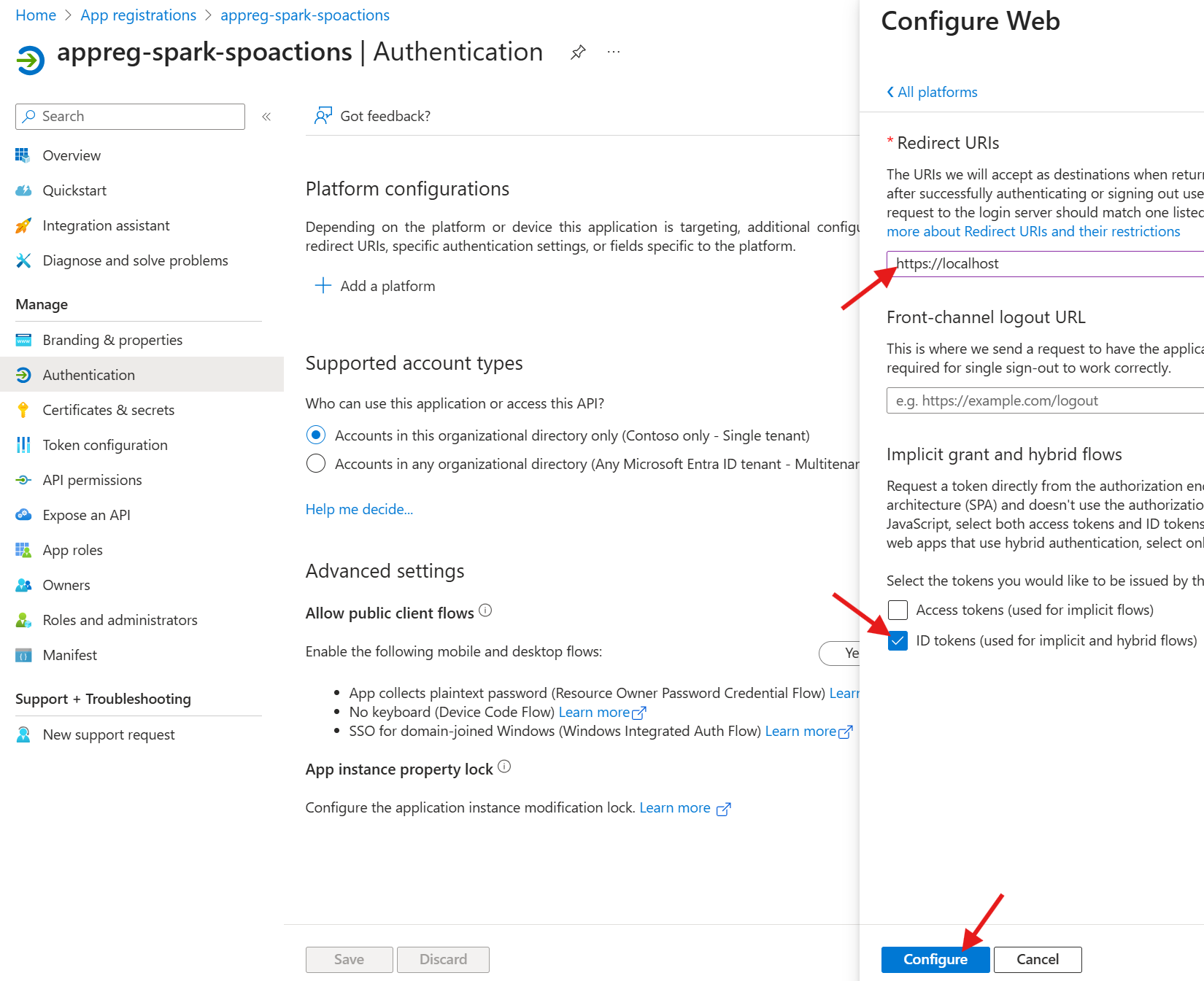 6. Select ID tokens under Implicit grant and hybrid flows