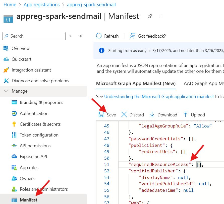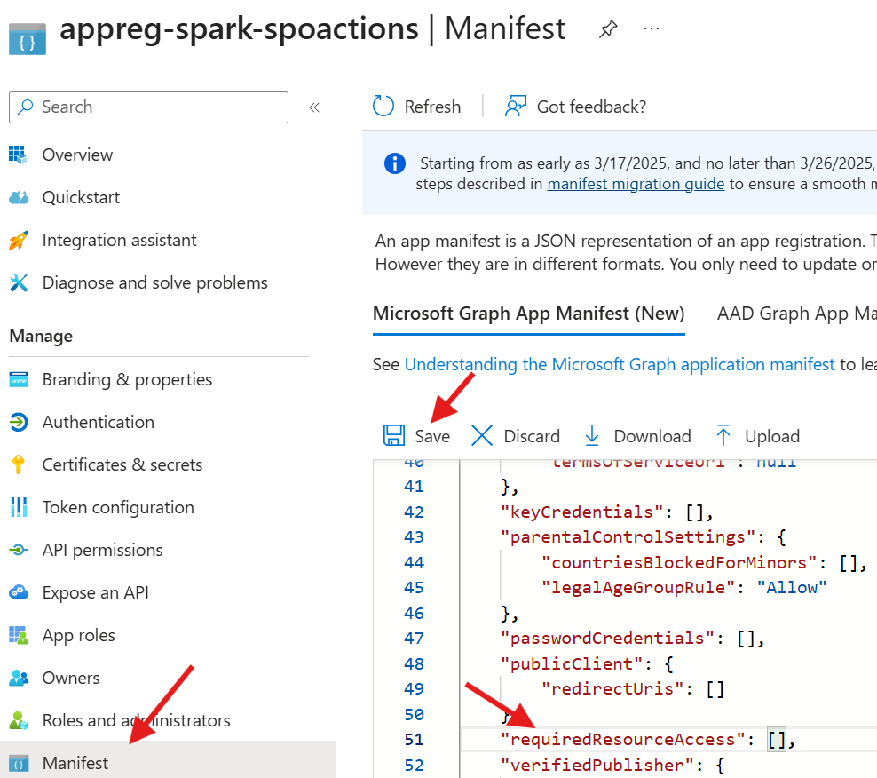 json “requiredResourceAccess”: [ { “resourceAppId”: “00000003-0000-0000-c000-000000000000”, “resourceAccess”: [ { “id”: “b633e1c5-b582-4048-a93e-9f11b44c7e96”, “type”: “Role” } ] } ]