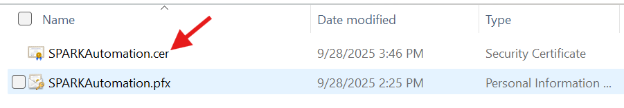 - A CER format of the certificate