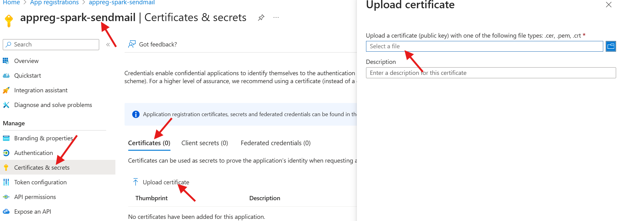 - Click on Upload certificate